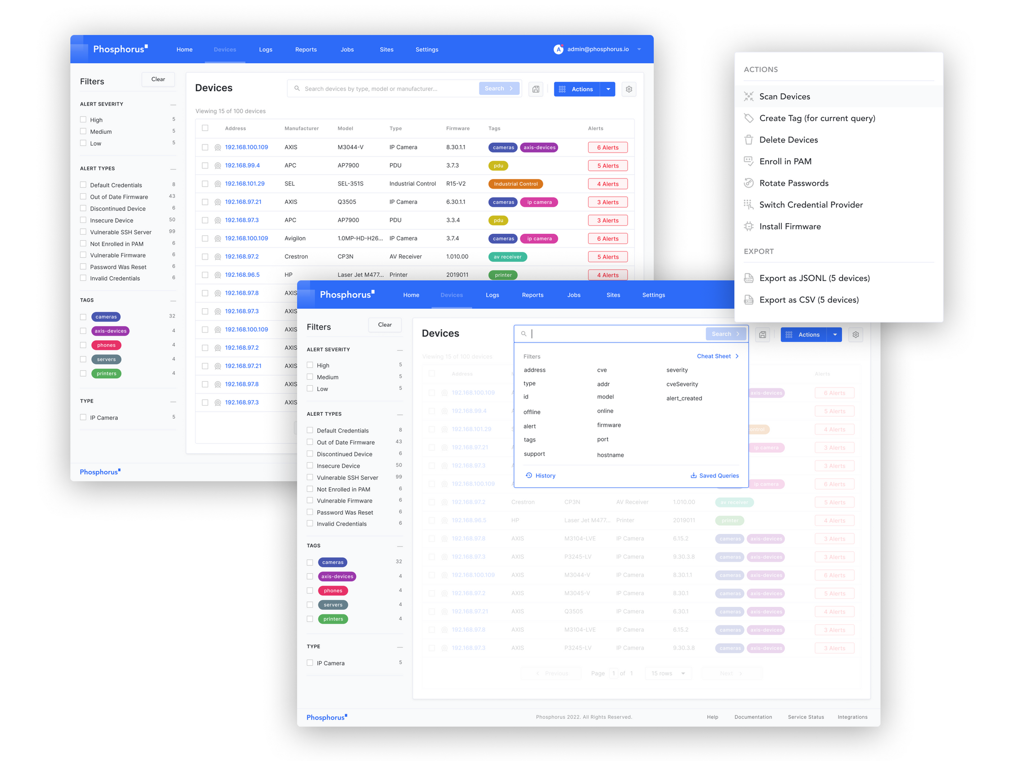 I led the design efforts for Phosphorus, collaborated with various teams—including engineering, product management, customer success, sales engineering, and marketing—to build the platform from the ground up. The platform's core functionalities are structured around three primary themes: