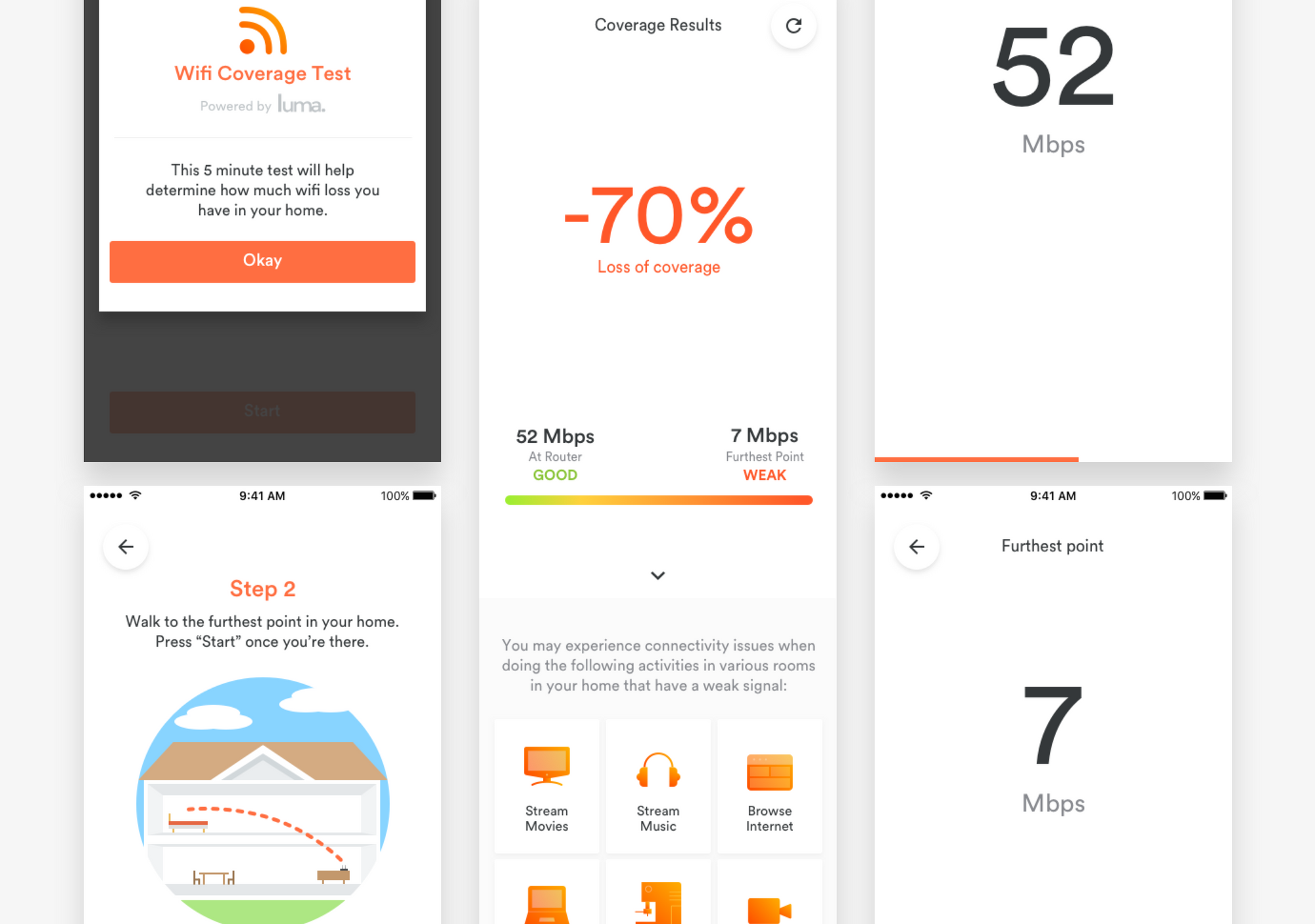 The primary goal of the coverage test was to bring more clarity to the users actual coverage so they could be more informed on whether or not their network can handle the number of connected devices in their home. From a business perspective, the effort to build this app proved useful as it provided another purchase channel for Luma.