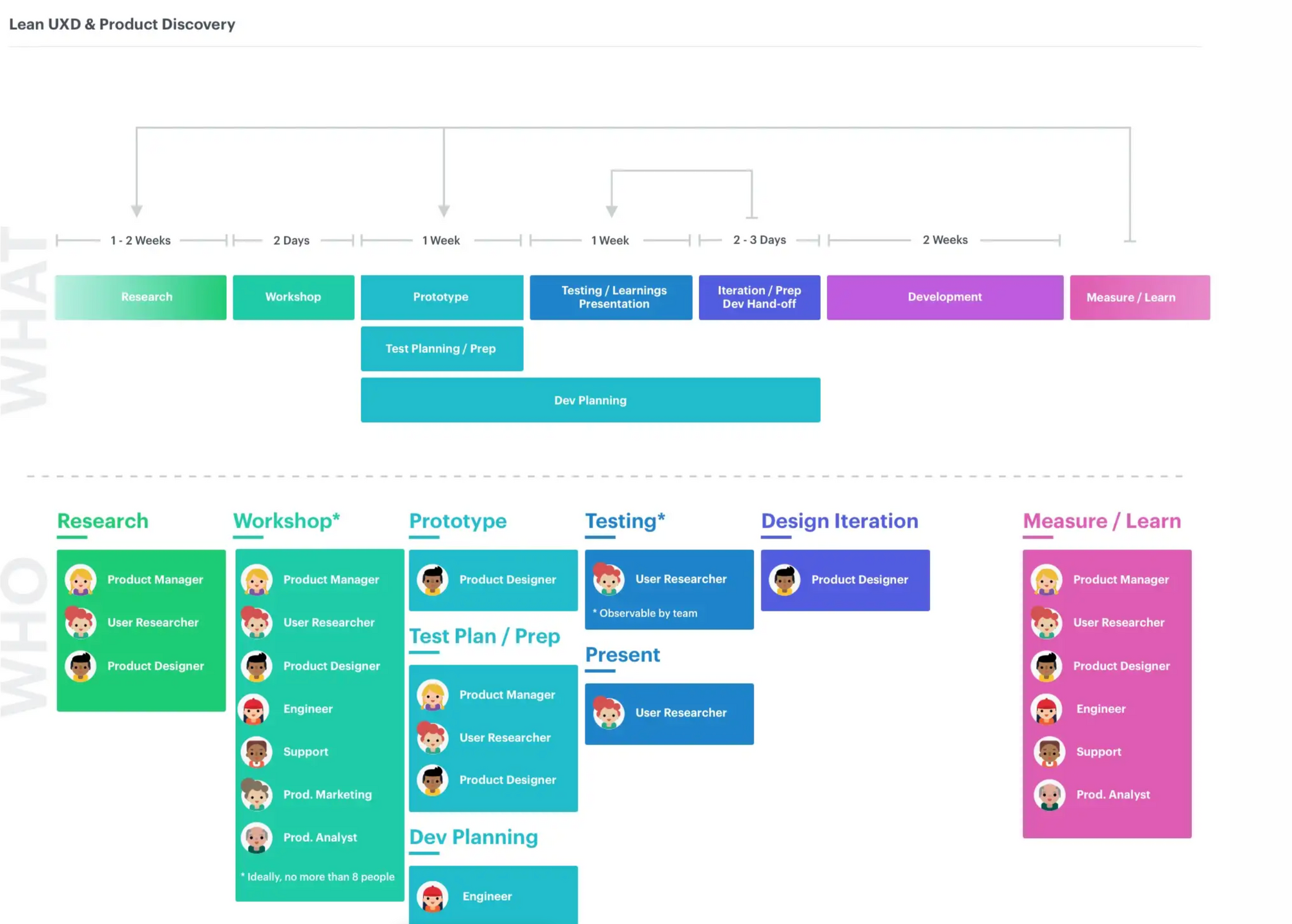 - Success — define KPI’s and what success means (Product Manager w/ team input)